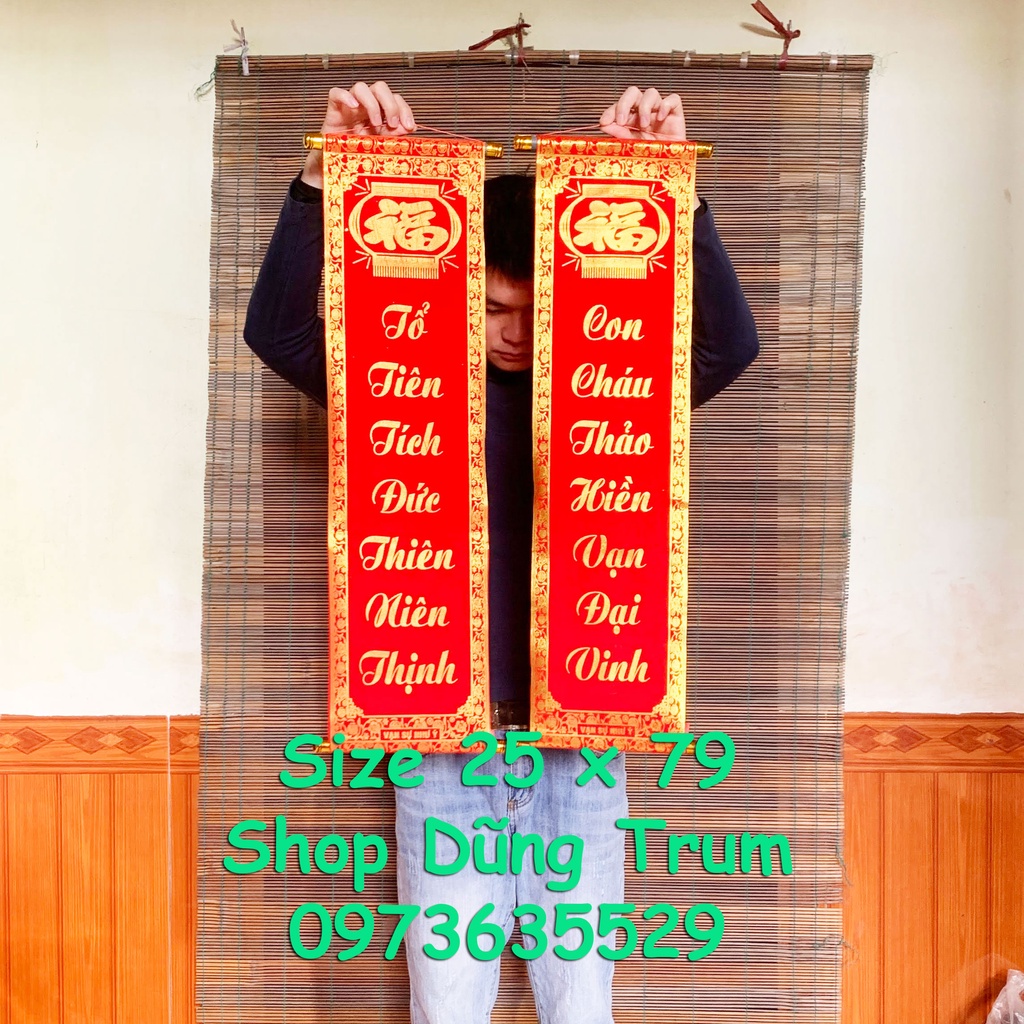Câu đối Tết chất nhung trang trí Tết cực ý nghĩa size 25 x 79cm (Tổ Tiên Công Đức)Câu đối Tết chất nhung trang trí Tết cực ý nghĩa size 25 x 79cm (Tổ Tiên Công Đức) Giá STRAX