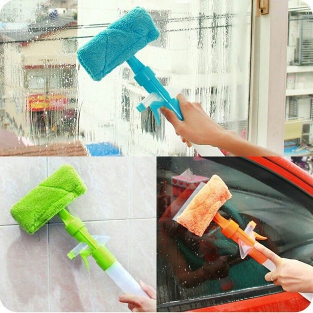 Cây lau kính kèm bình xịt nước đa năng | Chổi lau kính vắt phẳng tiện dụng