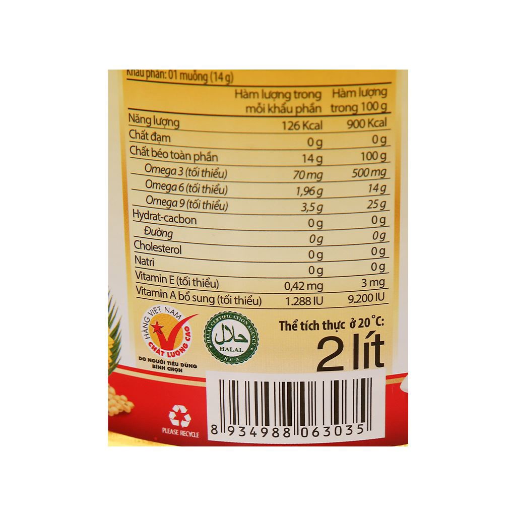 • Thương hiệu: MEIZAN • Xuất xứ: Việt Nam • Dung tích: 2 Lít • Hạn sử dụng: 24 tháng kể từ ngày sản xuất • Thích hợp: Chiên, xào, trộn salad, làm sốt • Bảo quản: Nơi thoáng mát.