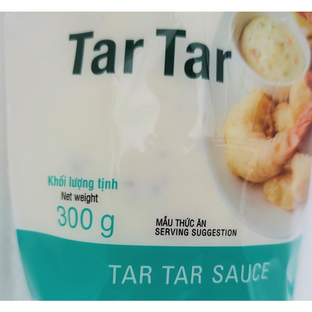 • Thương hiệu: KEWPIE • Xuất xứ: Việt Nam • Trọng lượng: 300g • Thành phần: Dầu đậu nành, Nước, Đường, Lòng đỏ trứng gà, Dưa leo, Giấm, Muối Iốt, Cà rốt, Chất làm dày (415), Chất điều chỉnh độ acid (296, 330). Hành tây, Bột thì là, Bột tỏi, Bột hành tây, Chất điều vị (621), Bột tiêu đen, Ngò tây, Chiết xuất hạt mù tạt, Chất bảo quản (385). • Hướng dẫn sử dụng: dùng làm gia vị cho món ăn • Xốt Tar Tar là sự kết hợp hài hòa giữa vị chua ngọt thanh dịu của dưa chua, và hương thơm của hành tỏi, chanh và thì là. Giúp giảm sự béo ngấy của các món chiên và tăng thêm phần đậm đà cho các món bánh mì kẹp. • Hạn sử dụng: 10 tháng kể từ ngày sản xuất • Bảo quản: nơi khô ráo thoáng mát, tránh ánh nắng trực tiếp