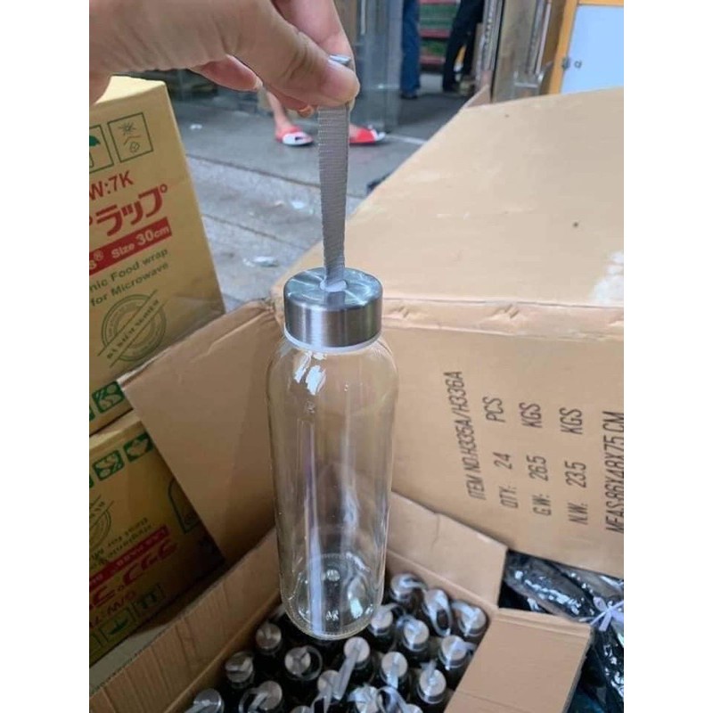 Giới thiệu Chai Nước Thủy Tinh 500ml Nắp Dày Có Dây Xách Đựng Nước Trái Cây Nhỏ Gọn
