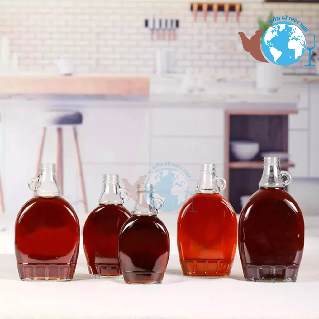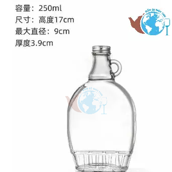 Giới thiệu Chai thủy tinh 250ml có quai có kèm nắp / chai kiểu đựng rượu 250ml