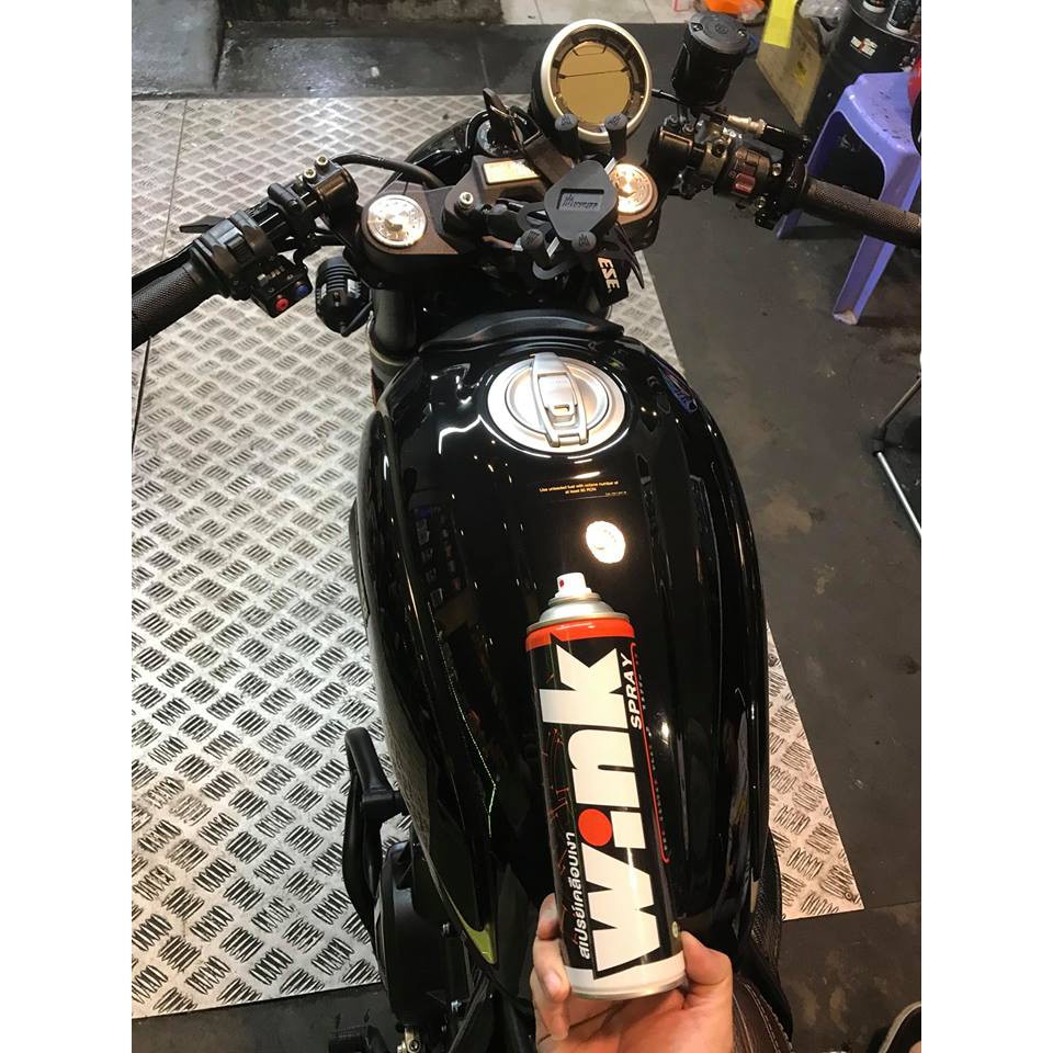 Công dụng: - Làm sáng bóng dàn áo siêu nhanh chỉ với 1 lần xịt nhẹ và 1 lần lau nhanh qua (dàn áo nước sơn bóng). - Tạo hương thơm. - Tạo chiều sâu và làm đậm màu nước sơn. - Sử dụng được cho dàn áo đã dán keo bóng. - Đặc biệt: Làm đen/ đậm màu lốc máy có nước sơn đen, pô xe màu đen nhám, heo dầu. Kim loại sườn xe, ghi đông, bánh mâm vành xe, ống lòng phuộc, nhựa nhám, cùm công tắc, gác chân, bọc nhựa dây điện... - Bảo dưỡng, làm đậm màu dàn áo nước sơn mờ, nhám. Chi tiết kim loại màu đen: heo dầu, pô, chảng ba, ống lòng phuộc, gác chân, ...