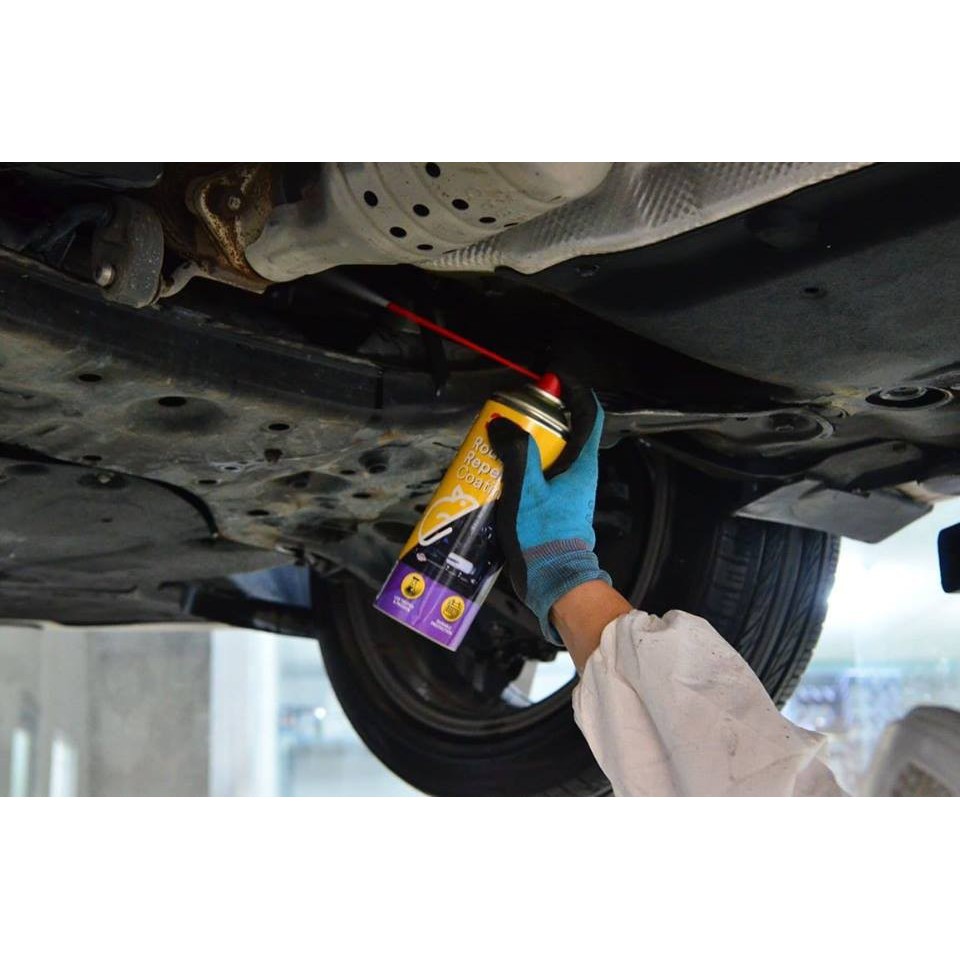 Quy trình sử dụng: – Đeo Khẩu trang & Găng tay chống hoá chất trước khi thực hiện. – Làm sạch khoang máy và các chi tiết xe. – Thổi khô các chi tiết xe. – Lắc đều chai và xịt phủ các chi tiết nhựa, ống cao su, giắc điện, dây diện, phủ 4 hốc bánh xe.