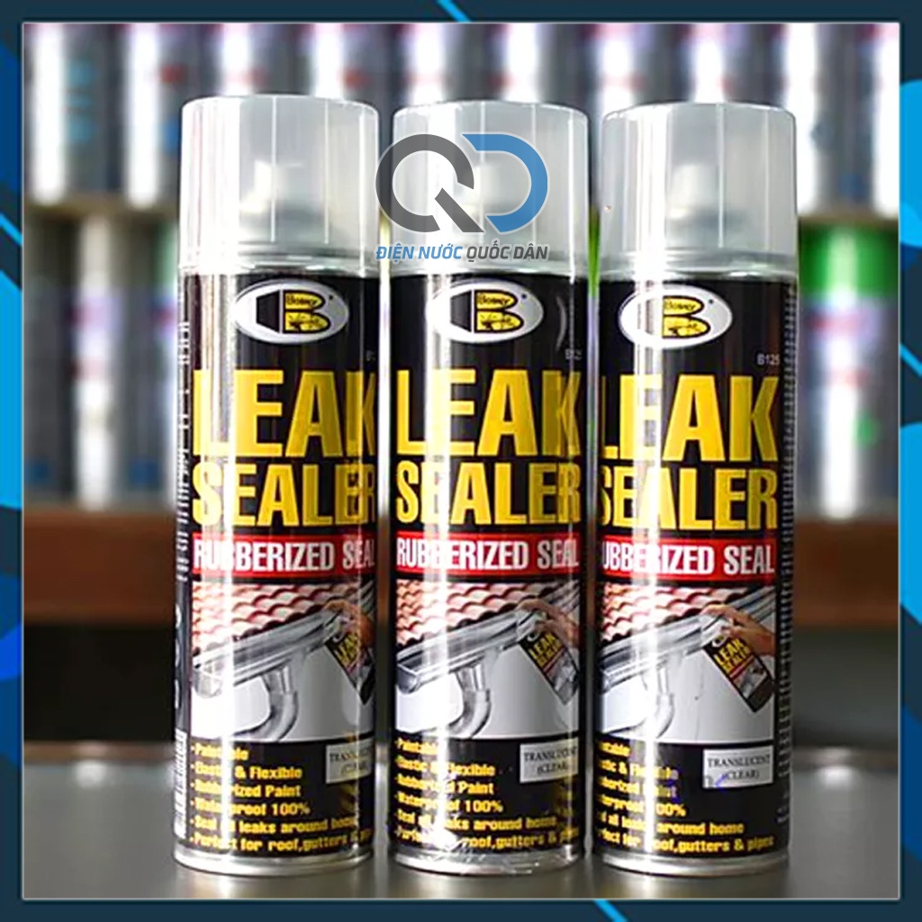 Bình xịt chống thấm nước Leak Sealer Bosny Thái Lan B125 loại Tốt. Lớp phủ cao su được bào chế để che phủ các chỗ rò rỉ và vết nứt. Xịt bám dính tốt vào nhựa, kim loại, thép không rỉ, nhôm, gỗ, thủy tinh, thép mạ kẽm, bê tông, PVC và các bề mặt khác. Làm khô nhanh trong vòng 15-30phút - nên để khô tối đa trong vòng 24h để đạt độ bền tối đa. Dung tích: 600ml. Hạn sử dụng: 3 năm kể từ ngày sản xuất. Xuất xứ: Thái Lan