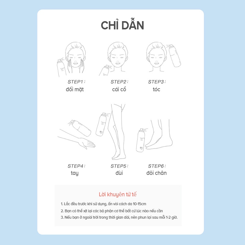 Chi tiết sản phẩm Ưu điểm của sản phẩm: Sản phẩm có thể chống lại bức xạ tia cực tím trong thời gian dài, không thấm nước và chống mồ hôi, che phủ tốt và không nhờn, thiết kế kiểu phun sương, dễ dàng mang theo. Các dịp sử dụng: kỳ nghỉ, mua sắm, văn phòng Thành phần: chiết xuất từ rễ cây, chiết xuất từ hoa violet, chiết xuất từ rễ hoa mẫu đơn. Hiệu quả: chăm sóc da tự nhiên, chống nắng