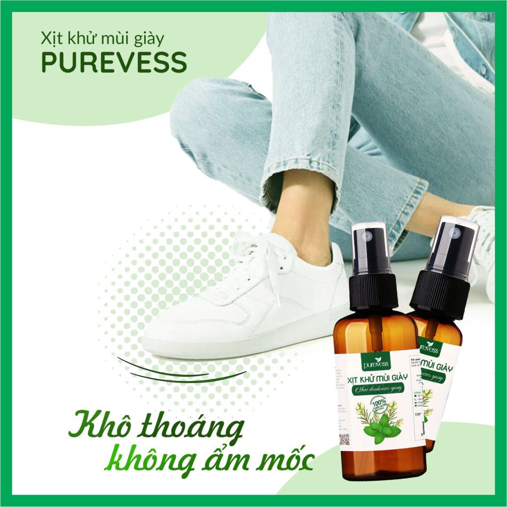 Chai xịt khử mùi giày tinh chất bạc hà the mát và tràm trà an toàn cho da --------------------------------------------------------- 🍀 Thông tin sản phẩm xịt khử mùi hôi giày : ✅ Xuất xứ : Việt Nam ✅ Dung tích 50 ml & 100 ml ✅ Hạn sử dụng : 2 năm từ ngày sản xuất ✅ Nhãn hiệu : Purevess ---------------------------------------------------------- 🍀 Công dụng sản phẩm chai xịt khử mùi giày : 👉 Tinh dầu thiên nhiên được kết hợp lại với nhau để tạo ra một dòng sản phẩm giúp cho đôi giày sạch sẽ và thơm hơn. 👉 Công dụng : khử mùi hôi giày, khử mùi hôi chân, khử mùi nón bảo hiểm... ---------------------------------------------------------- 🍀 Thành phần chai xịt khử mùi giày : 👉 Tinh dầu Bạc Hà 👉 Tinh dầu Tràm Trà 👉 Chiết xuất nha đam 👉 Cồn thực phẩm ---------------------------------------------------------- 🍀 Hướng dẫn sử dụng của chai xịt khử mùi giày : 👉 Lắc đều trước khi sử dụng. 👉 Dể dàng sử dụng, chỉ phun trực tiếp lên bàn chân, bên trong đôi giày hoặc nón bảo hiểm ---------------------------------------------------------- 🎊 Lưu ý và bảo quản sản phẩm : 👉 Không dùng cho trẻ em dưới 6 tháng tuổi. 👉 Nơi khô ráo thoáng mát, tránh xa tầm tay trẻ em. ---------------------------------------------------------- 🎊 Chính sách bảo hành và đổi trả : ✅ Bảo hành 1 đổi 1 trong trường hợp lỗi nhà sản xuất ✅ Đổi trả từ 3-5 ngày nếu giao sai hoặc không đúng sản phẩm như hình. ✅ Mọi thắc mắc về sản phẩm mọi người đừng ngại chat ngay với shop để được tư vấn. ---------------------------------------------------------- Hasbtab : #xitkhumui #xitkhumuigiay #xitkhumuigiaydep #xitkhumuihoichan #chaixitkhumui #chaixitkhumuigiay #chaixitkhumuihoigiay #chaixitkhumuihoichan #chaixitkhumuigiaydep #khumuigiay #khumuigiaydep #khumuihoigiay #khumuihoichan