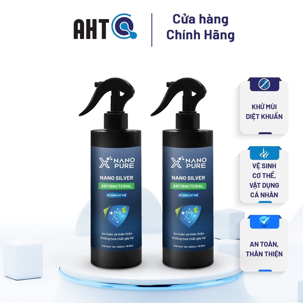 NANO BẠC DIỆT KHUẨN KHỬ MÙI NANO XPURE NANO BẠC AHT CORP (AHTC) 500ML-NƯỚC RỬA TAY KHÔ XỊT CHAI XỊT VỆ SINH CƠ THỂ. CHAI XỊT DIỆT KHUẨN KHỬ MÙI NANO XPURE NANO BẠC AHT CORP (AHTC) 500ML-NƯỚC RỬA TAY KHÔ, XỊT KHỬ MÙI VỆ SINH CƠ THỂ NANO XPURE ( 100 ML& 500 ML) tiện lợi dễ mang theo Thành phần: Nano Silver, PVP, PEG-40, Purified water Công dụng: Làm sạch, khử mùi, vệ sinh cơ thể, giúp ngăn ngừa nhiễm khuẩn. Hướng dẫn sử dụng: Xịt lên mặt, tay, cơ thể để làm sạch, vệ sinh, khử mùi. Ngoài ra có thể xịt lên các vật dụng cá nhân trước khi dùng. Hướng dẫn bảo quản: Bảo quản nơi khô ráo, thoáng mát, tránh ánh sáng trực tiếp