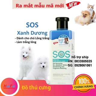 SOS Xanh dương- Sữa Tắm SOS cho chó mèo 530ml loại chó lông trắng