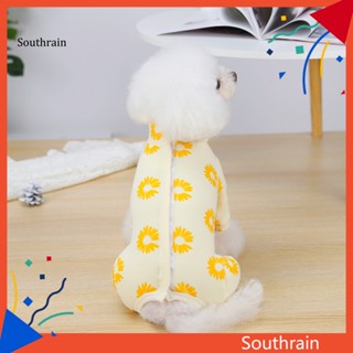 Trang Phục Mùa Hè Áo Chui Đầu Màu Vàng-Trắng Thoáng Khí In Họa Tiết Hai Ống Chân Cho Cún Cưng