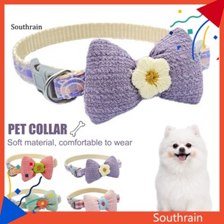 Vòng Cổ Thắt Nơ In Họa Tiết Hoa Dễ Thương Thoáng Khí Linh Hoạt Cho Thú Cưng