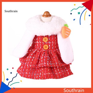 Đầm Cotton Hai Lớp Mềm Mại Trang Trí Tai Thỏ Bông Có Thể Giặt Sạch Dành Cho Cún Cưng