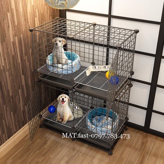 < Tặng búa> COMBO Chuồng Chó lắp ghép 2 ô bằng lưới sắt , có chân - kèm khay vệ sinh