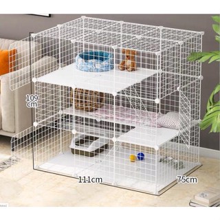 Chuồng mèo 3 tầng 2 tầng giá thành rẻ đẹp lắp ghép đa chức năng tiện lợi với lưới sắt sơn tĩnh điện làm lồng quây thú cư