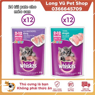 Combo 24 túi mix 2 vị thức ăn pate cho mèo con Whiskas 85g/túi