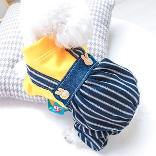 Bộ liền 4 chân cho chó mèo áo nỉ vàng quần kẻ kute