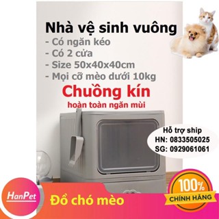 Nhà vệ sinh cho mèo VUÔNG có ngăn kéo khép kín có cửa vào ra riêng chống văng cát kèm xẻng