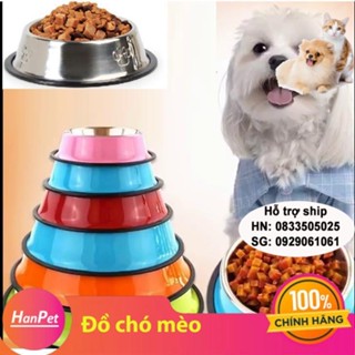 Bát / chén ăn inox chống lật dành cho chó mèo gồm 2 loại bát inox chó sơn màu và bát inox mèo không màu