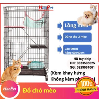 Chuồng mèo 3 tầng LM600 to đẹp giá rẻ bằng sắt Size M cao 90cm Lồng mèo thép sơn tĩnh điện kèm khay nhựa