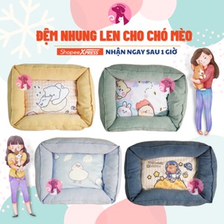 Đệm cho chó mèo - Đệm nhung len tăm - Có thể dùng với thảm mùa hè. Nệm chữ nhật cho thú cưng chống xê dịch (Hàng đẹp)