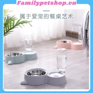 Bát ăn đôi chó mèo-bát ăn đôi inox kèm bình nước cho thú cưng-familypetshop.vn