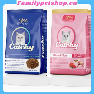Thức ăn đồ ăn hạt cho mèo con và mèo trưởng thành cám mèo Catchy-gói 400g-familypetshop.vn