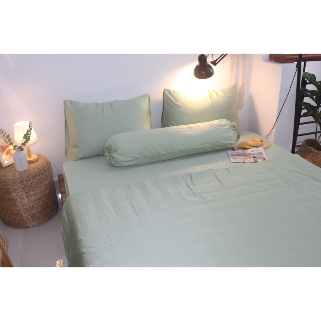 Bộ Chăn drap gối Tencel 60S màu trơn cao cấp mềm mại mịn màng vải nằm siêu mát- Mẫu XanhMatchaGiá SCCP
