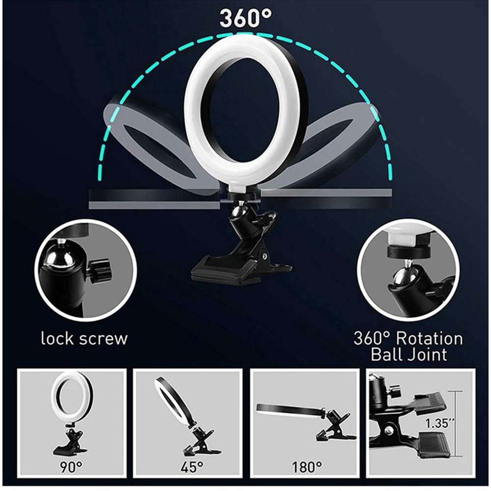 Hộp gói màu x 1 Vòng 6 inch Đổ đầy ánh sáng Đèn Video 33 Điện thoại RGB Chân đế chụp ảnh tự sướng USB Có thể điều chỉnh độ sáng 3 chế độ Phát trực tiếp Máy tính để bàn trang điểm