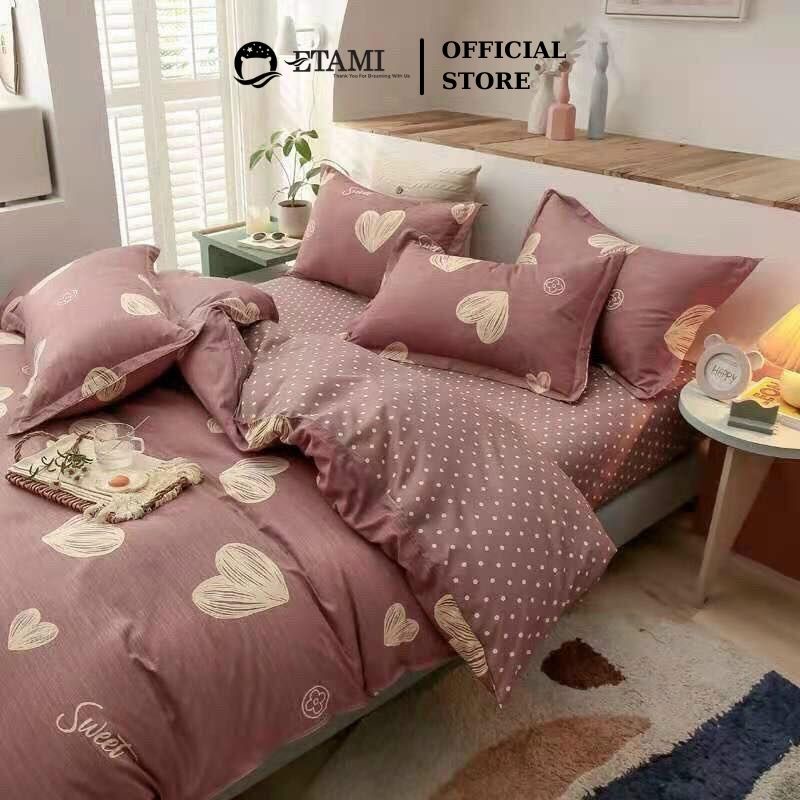 Giới thiệu Bộ chăn ga gối cao cấp ETAMI cotton poly tim vàng xước cute miễn phí bo chun drap giường ga trải giường P18