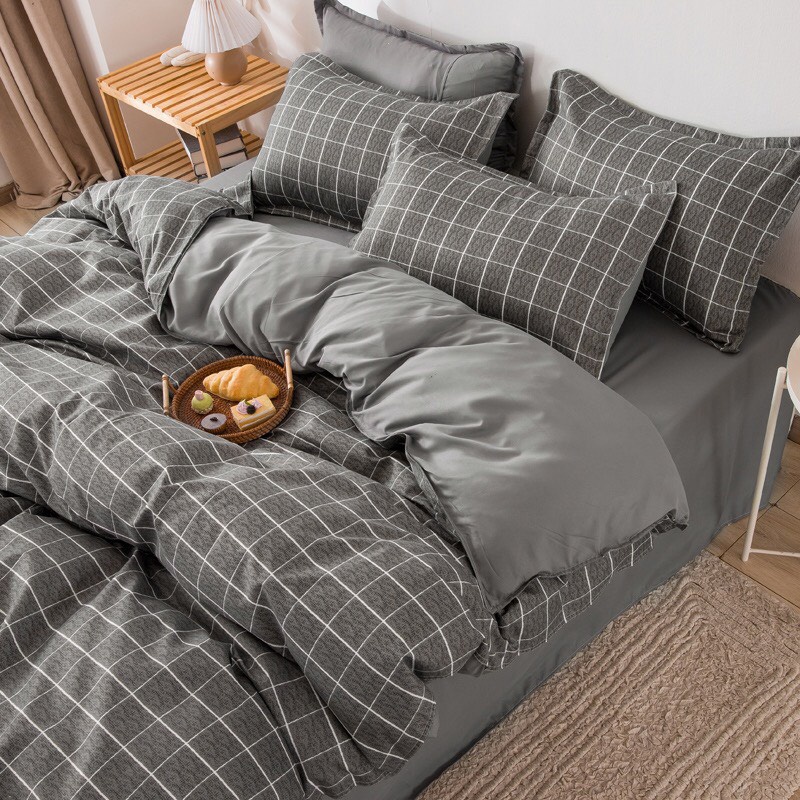 Nhà Cửa & Đời Sống > Chăn, Ga, Gối & Nệm > Bộ trải giường, vỏ gối & hộp đựng > Bộ chăn ga gối Cotton poly M2T bedding gồm vỏ chăn mền, drap ga giường và 2 vỏ gối nằm - PL kẻ dạ