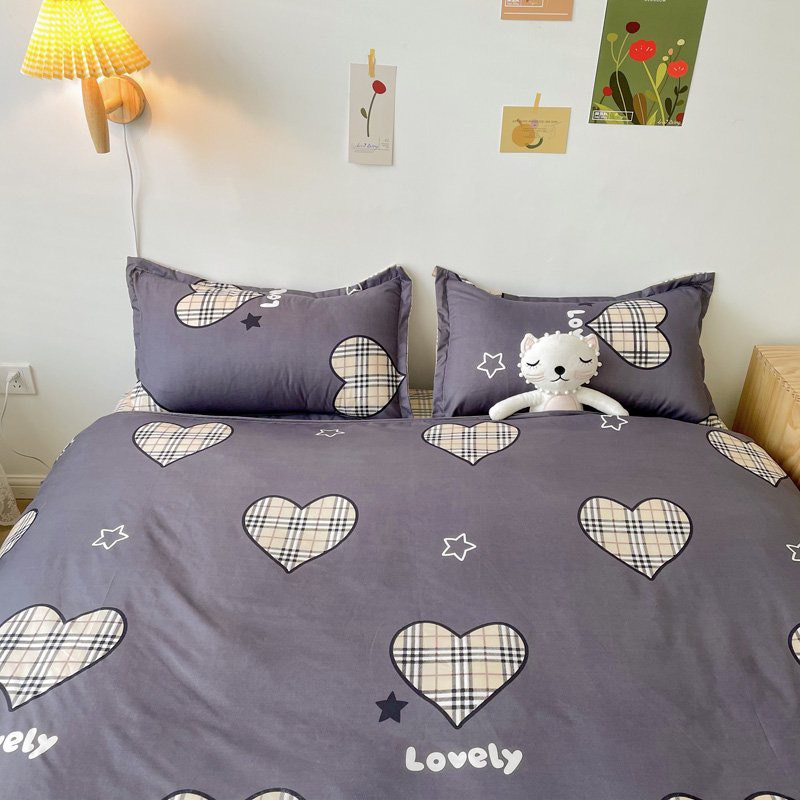 Nhà Cửa & Đời Sống > Chăn, Ga, Gối & Nệm > Bộ trải giường, vỏ gối & hộp đựng > Bộ chăn ga gối Cotton poly M2T bedding gồm vỏ chăn mền, drap ga giường và 2 vỏ gối nằm họa tiết tim kẻ xanh