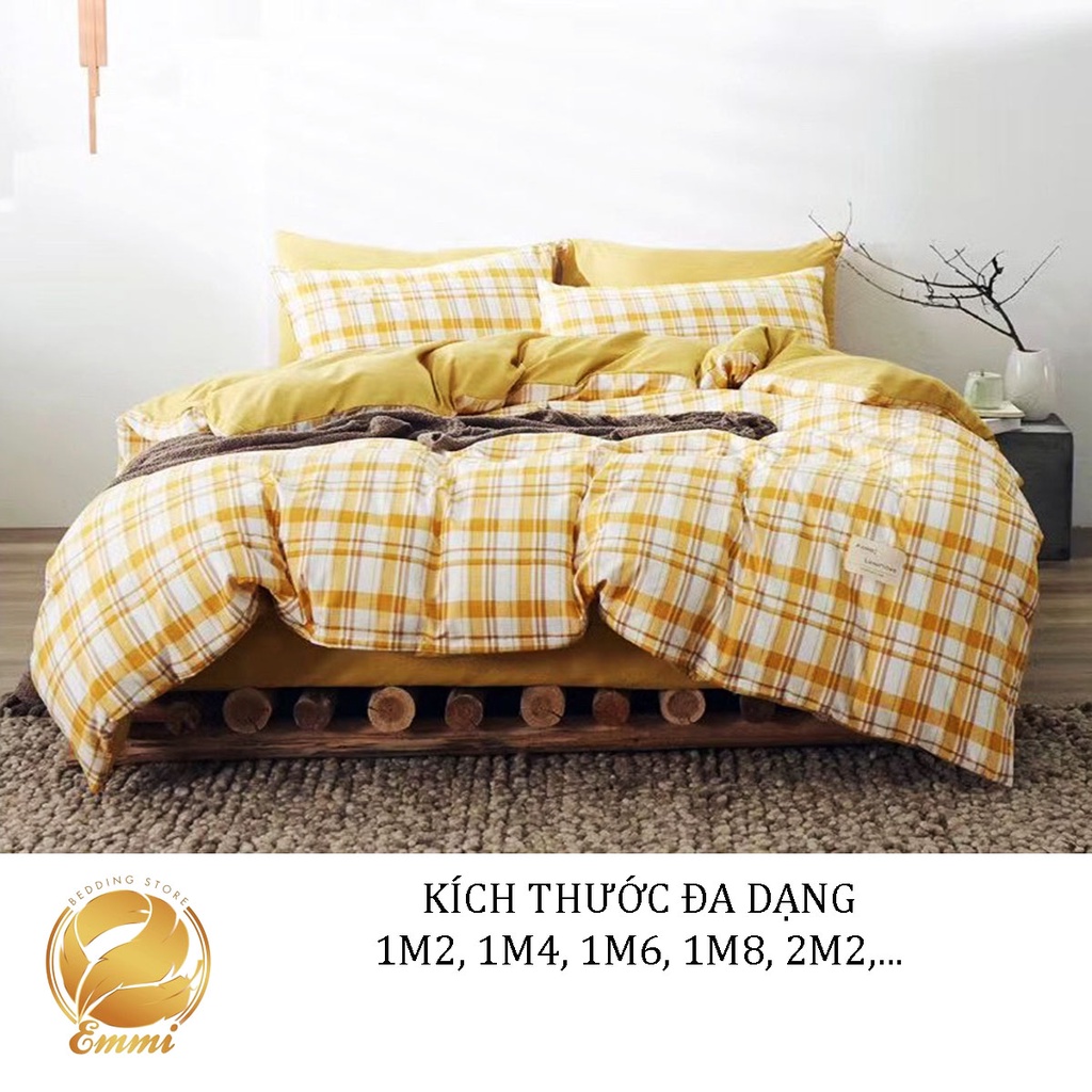 Giới thiệu Bộ Chăn Ga Gối Cotton TC Emmidecor Kẻ HQ vàng miễn phí bo chun và làm ga phủ theo yêu cầu