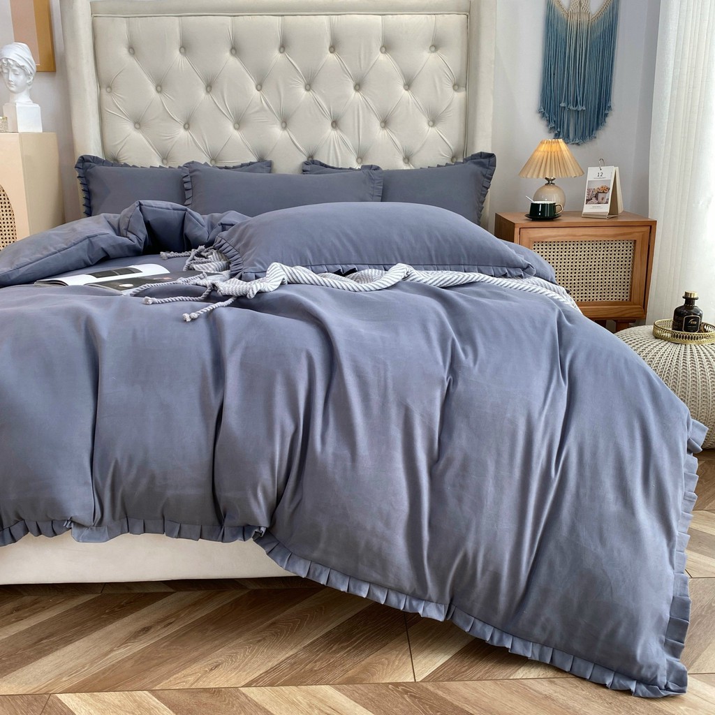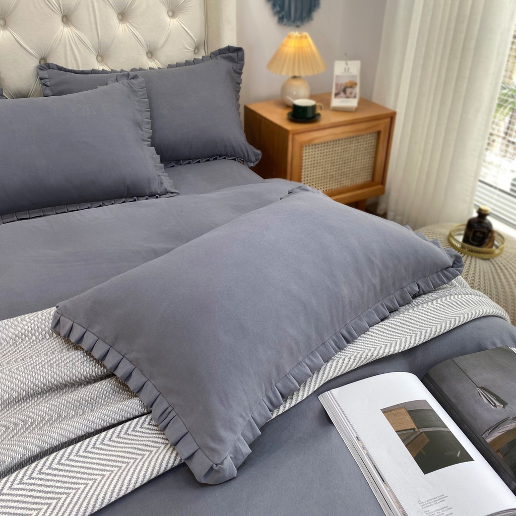 Giới thiệu Bộ Chăn Ga Gối Cotton Tici Bèo Lidaco Cao Cấp - Xám Đậm