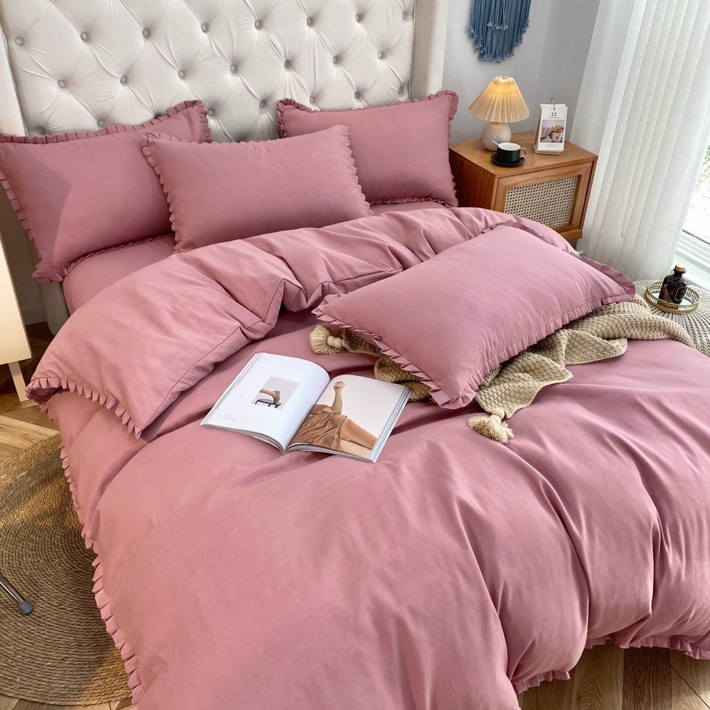 Giới thiệu Bộ Chăn Ga Gối Cotton TICI LIDACO Bèo trơn - Hồng Phấn
