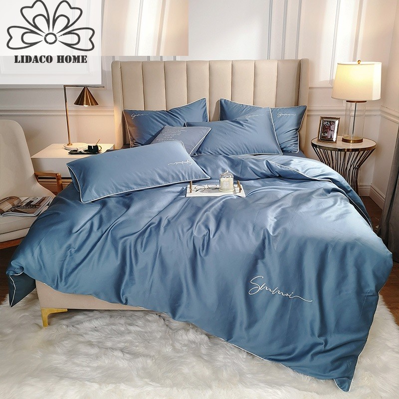 Giới thiệu Bộ Chăn Ga Gối Lụa LIDACO cotton lụa trơn sợi vải 60s - Xanh dương nhạt
