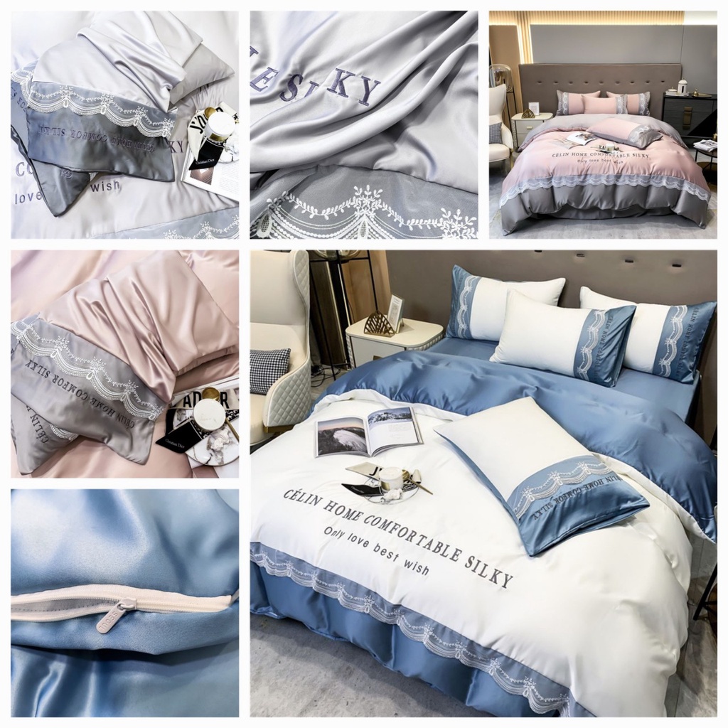 Nhà Cửa & Đời Sống > Chăn, Ga, Gối & Nệm > Bộ trải giường, vỏ gối & hộp đựng > Bộ chăn ga gối lụa ren cao cấp, Chất liệu phi lụa ren phối bắt mắt, thoáng mát không nhăn, miễn phí bo chun ga giường