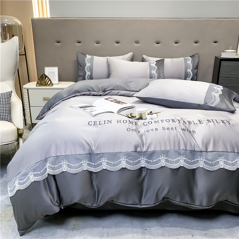 Bộ chăn ga gối phi Lụa Célin phối ren xinh xắn cao cấp, ga giường và vỏ gối phi lụa sang trọng chất lụa mềm mịn mát lạnh
