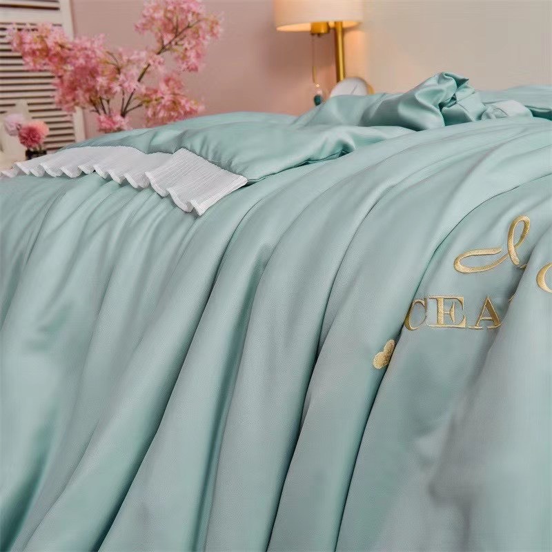 Giới thiệu Bộ chăn gối lụa thêu chăn hè- Chất liệu phi lụa tencel mềm mịn mướt mát thích hợp mùa hè, miễm phí may chun