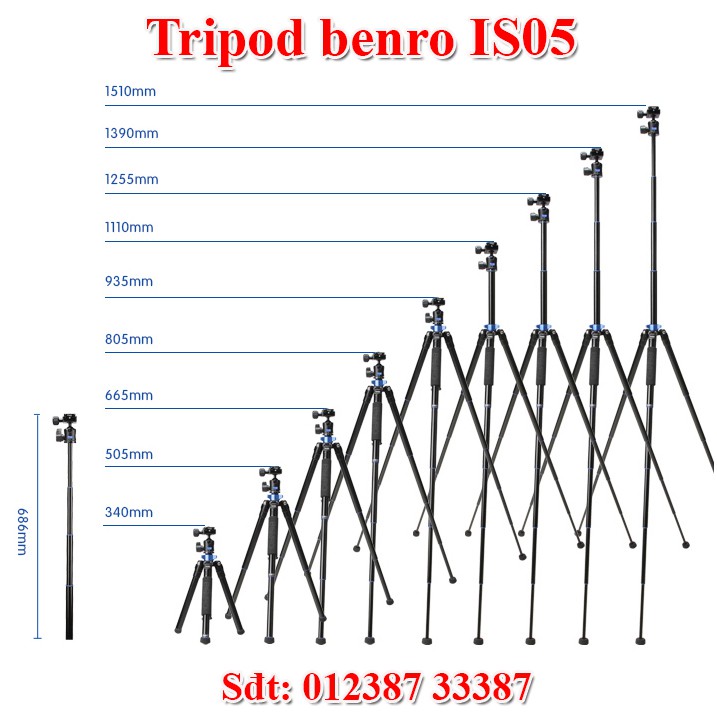 - Chân máy ảnh gia đình Benro IS05 - Tương thích với hầu hết các model máy ảnh trên thị trường - Thiết kế chắc chắn, nhẹ gọn - Chiều cao tối đa 1510mm - Chiều cao tối thiểu 285mm - Tải trọng 4 kg - Chân máy có 05 đoạn - Trụ giữa chuyên nghiệp, điều chỉnh độ cao theo 3 nấc ------------------------------------- A - TÍNH NĂNG NỔI BẬT 1 - Tương thích Benro IS05 sử dụng đế tháo nhanh dòng PU50S - dòng đế tháo nhanh thông dụng, tương thích với hầu hết các máy ảnh trên thị trường.