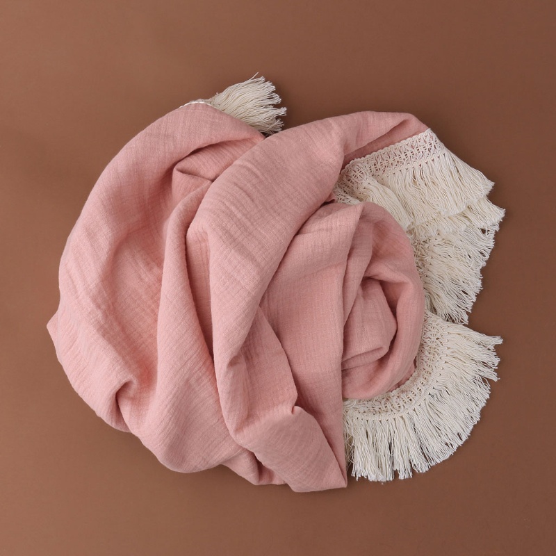 Giới thiệu Chăn Quấn Em Bé Bằng Cotton Phối Tua Rua Trang Trí Giường Ngủ
