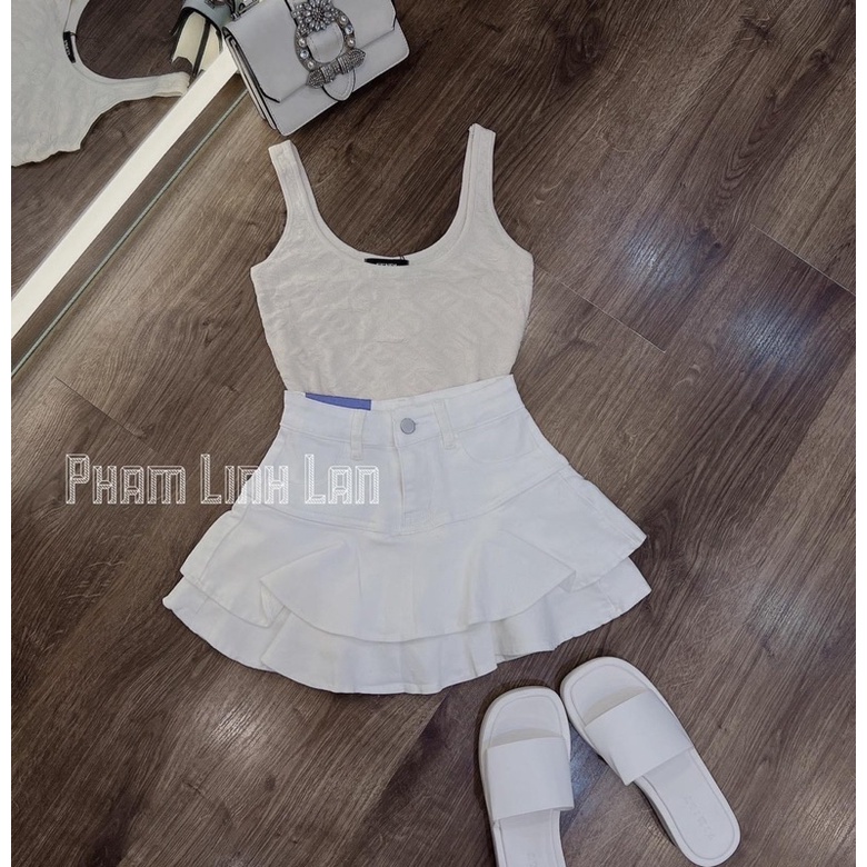 Giới thiệu Xả hàng - Chân váy bò tầng giả váy hàng QC, Chân váy xòe vải jean CV971 - NhiNhi Shop