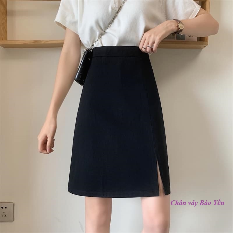 Giới thiệu Chân váy chữ A màu đen dài 50cm xẻ trước( sẵn size) _ M33