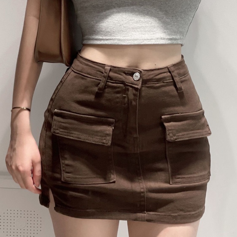 Giới thiệu Chân váy COZOK lưng cao có túi kiểu dáng đơn giản hợp thời trang