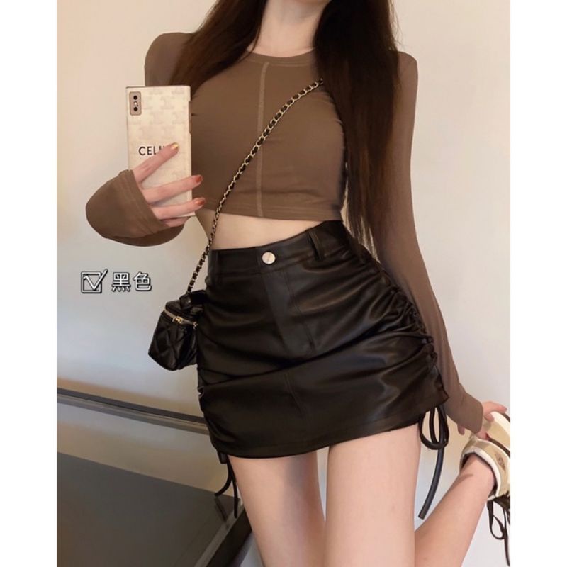Giới thiệu Chân Váy Da Dây Rút 2 Bên Có Quần Trong Chân Váy Cá Tính Mã 003