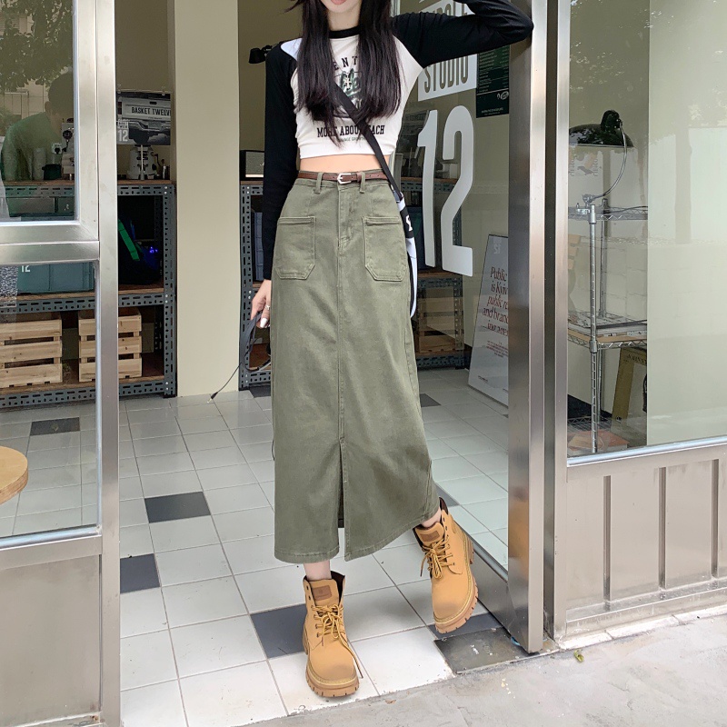 Giới thiệu Chân Váy Denim Lưng Cao Xẻ Tà Thời Trang Mùa Thu Cho Nữ