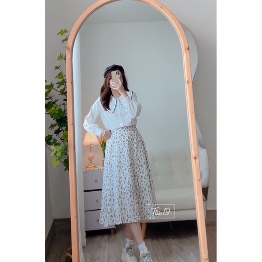 Giới thiệu Chân váy hoa trơn . Chân váy midi dáng dài hoa nhí Tia19 ( Ảnh thật)