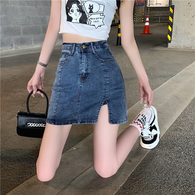 #Phụ nữ #Hàn Quốc #Mùa hè #Cổ điển #A-line #Highwaist #Shortskirt #Thời trang #Xu hướng #Màu xanh da trời #Denim #Kích thước váy