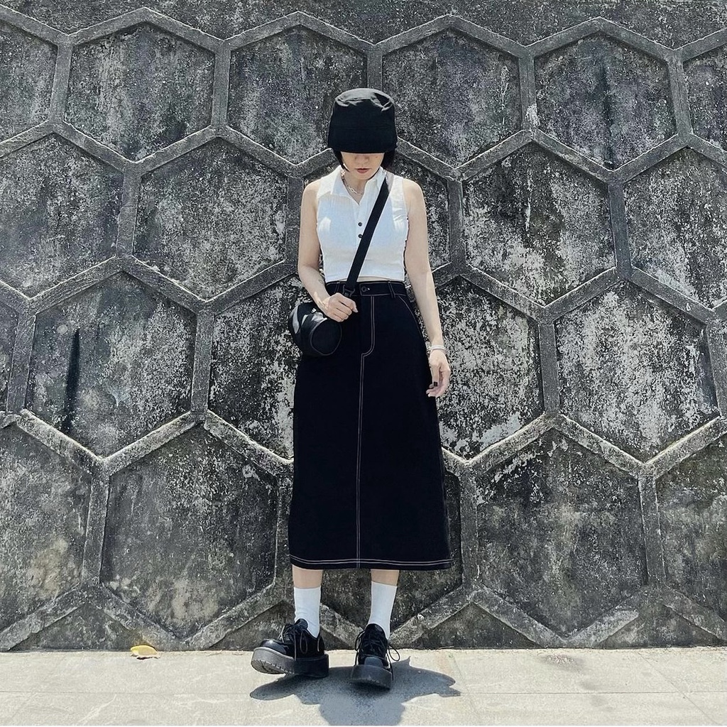 Giới thiệu Chân váy jeans dài/ Chân váy xẻ tà chỉ nổi dễ mix đồ