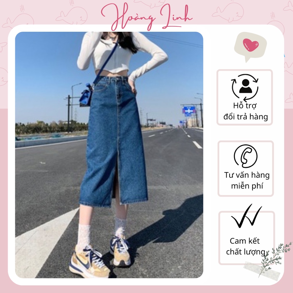 Giới thiệu Chân Váy Jeans Dài Xẻ Trước Hàng chuẩn loại 1 mã VD03