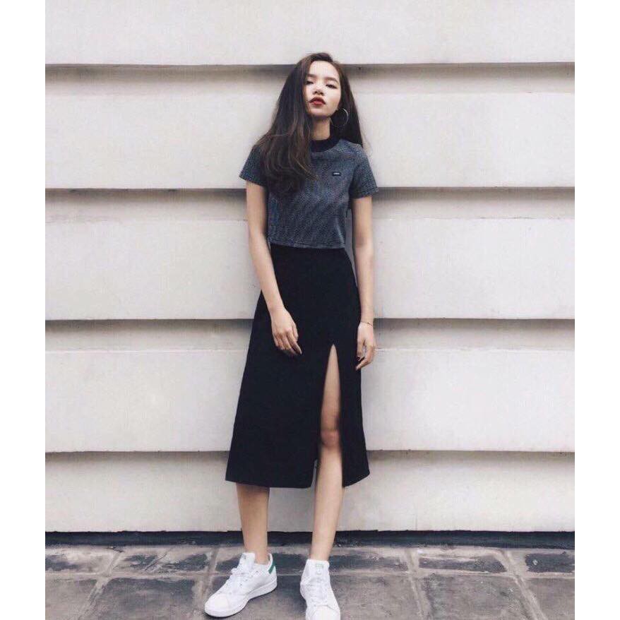 CHÂN VÁY MIDI XẺ TÀ CÓ SIZE CHẤT ĐẸP Shop vừa về thêm mẫu chân váy midi xẻ tà cực xinh xẻo cho các nàng đây ạ! Chân váy dài giữa bắp chân Thiết kế Xẻ tà nên mặc lên cực điệu đà nữ tính Mix với áo phông, áo 2 dây đều ok luôn ạ! Chất liệu: Tuyết cát Màu đen nên có thể mặc với mọi loại trang phục! === Thông số váy: - Size S: Eo < 66cm, Dài 71cm - Size M: Eo 67 -73cm, Dài 72cm - Size L: Eo 74-78cm, dài 73cm